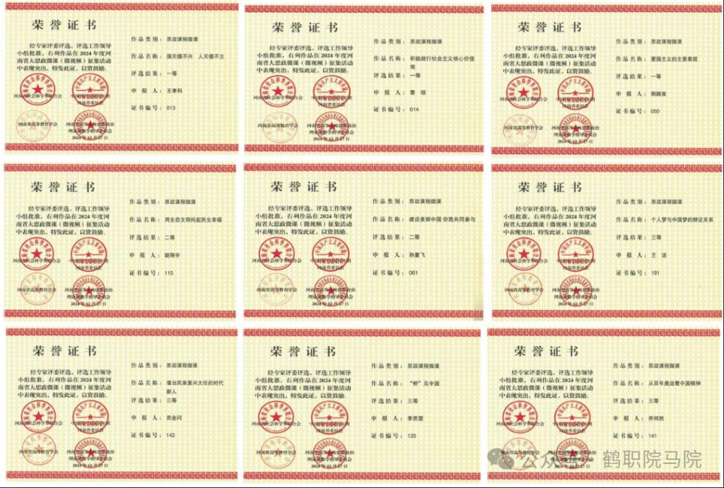 近日,由河南省社会科学界联合会、共青团河南省委、河南省高等教育学会、河南省高校思想政治理论课教学指导委员会联合举办的2024年度河南省大思政微课(微视频)评选结果正式揭晓,我院教师取得了荣获一等奖3项、二等奖2项、三等奖4项的好成绩。我院高度重视此次评选活动,参赛教师们以“大思政”为主线,结合社会热点,贴近大学生实际,深入挖掘教学内容,创新教学方法和手段,以新形式传播主流意识形态,让思政课更具有吸引力、传播力和感染力。学院将进一步加强思政课程建设,不断提升教师的教学能力和水平,努力打造更多具有思想性、理论性和亲和力、针对性的思政“金课”,为培养德智体美劳全面发展的社会主义建设者和接班人贡献力量。